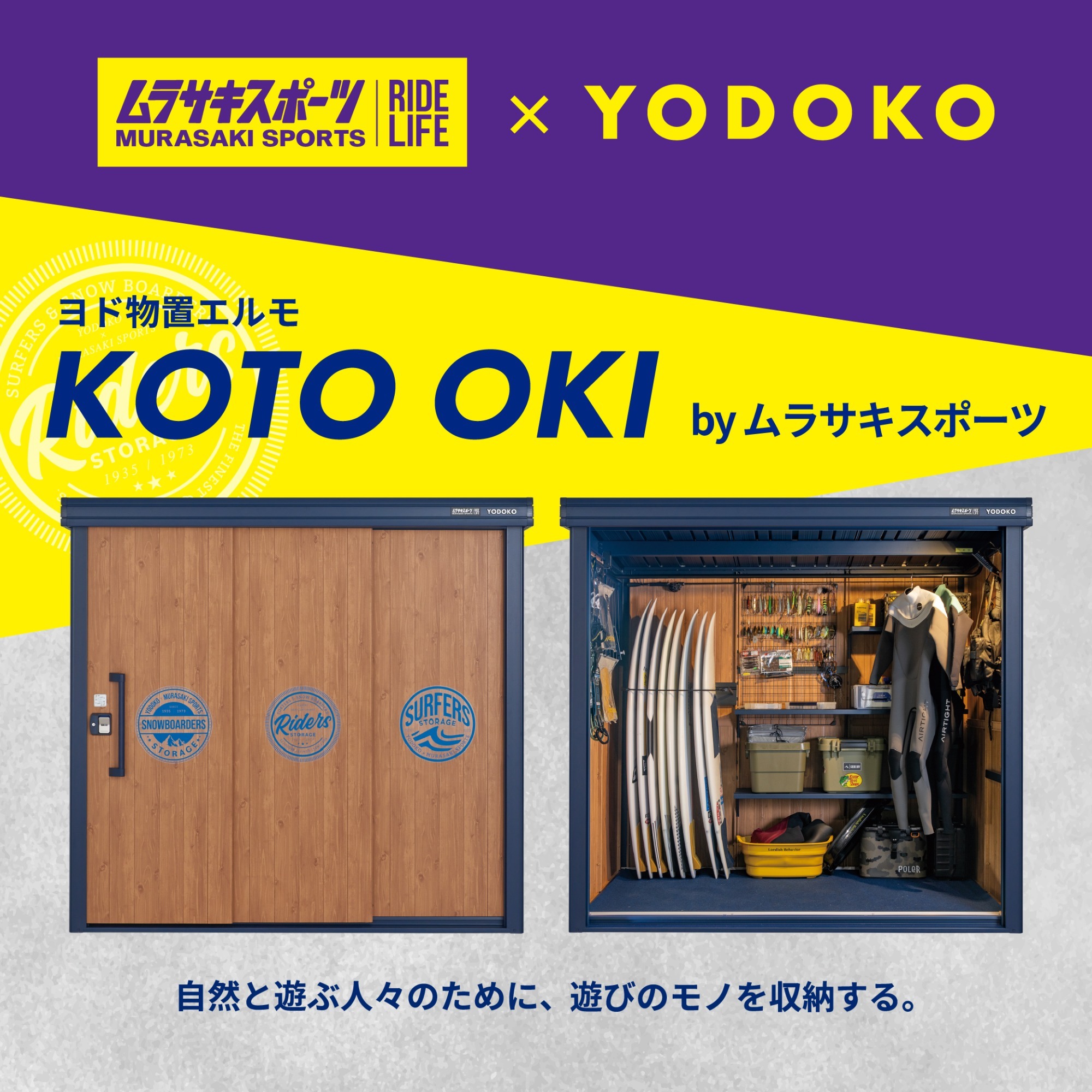 そんな中、本日ご紹介するのは、物置メーカーのヨドコウと横乗りスポーツ系大手販売店のムラサキスポーツによるコラボ商品、KOTO OKIです。プロサーファー、プロスノーボーダーが監修した遊ぶ大人ををサポートする収納スペースです。お気に入りのサーフボードやスノーボードをカッコよく保管したいと考えているプレーヤーの方は多いのではないでしょうか。そこで、オシャレなのは勿論、機能的に保管できるように開発されたのがKOTO OKIになります。