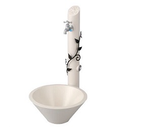 ガラス製とセラミック製のモザイクタイルをあしらった華やかな立水栓です。お庭がカジュアルに華やぎます。