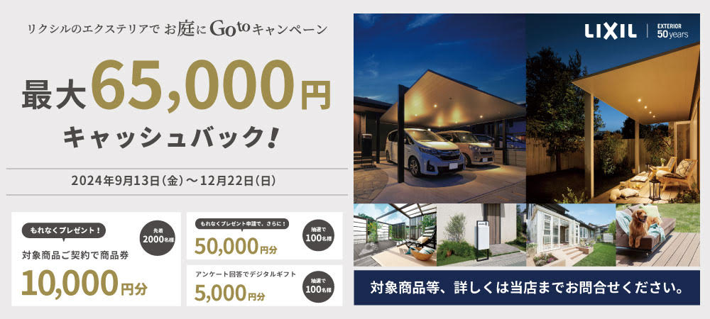 さらに、ガーデンルーム・カーポートSC採用の方には抽選で100名様に5万円の商品券をプレゼントのWチャンス!