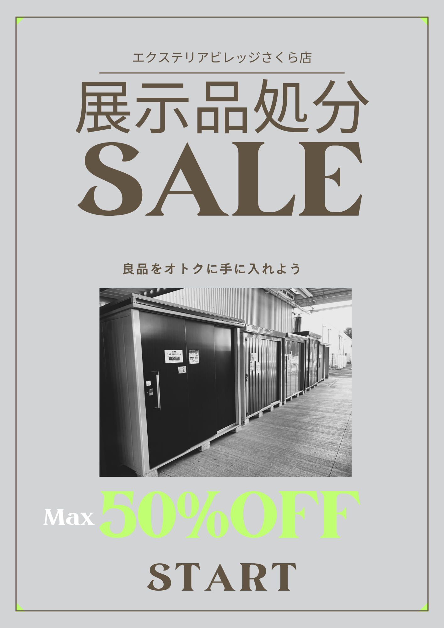 物置・テラス・サイクルポート・ウッドデッキ等、現品処分キャンペーン開催中です。無くなり次第終了となります。