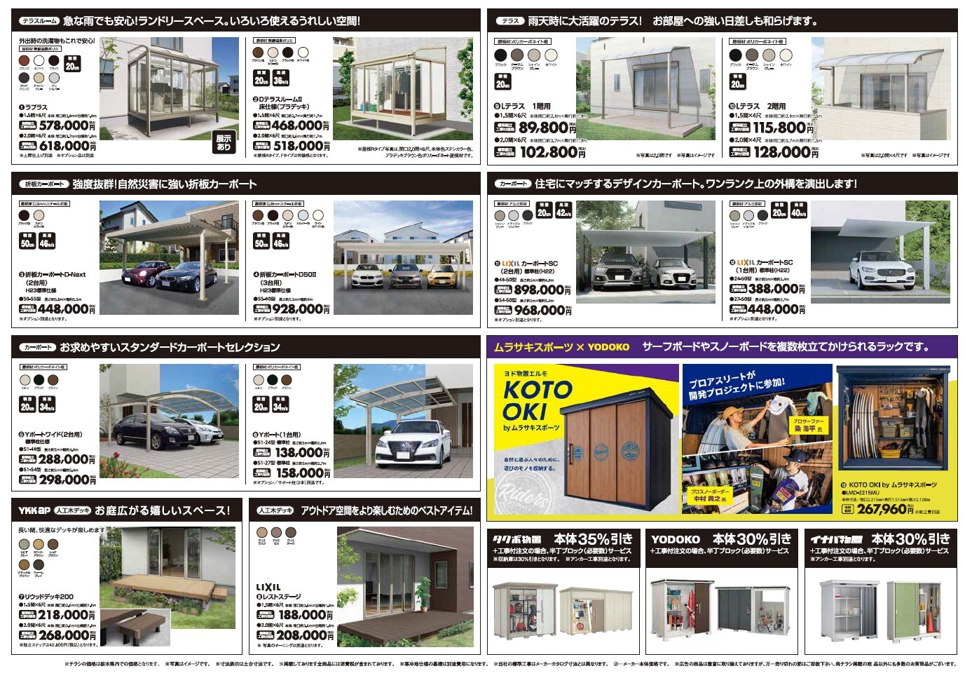 サンルーム / カーポート / 門扉 / フェンス /ブロック塀 / 物置 / 土間コンクリート /